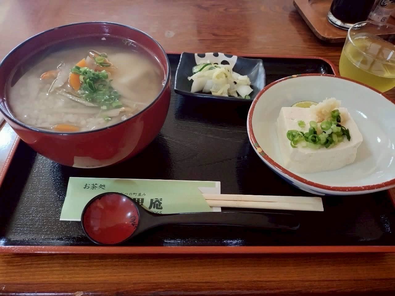 Try the local specialty “roasted tea soft-serve ice cream.” Why not enjoy a taste of Edo-period tea culture? We recommend the local specialty, “sobagome soup”!