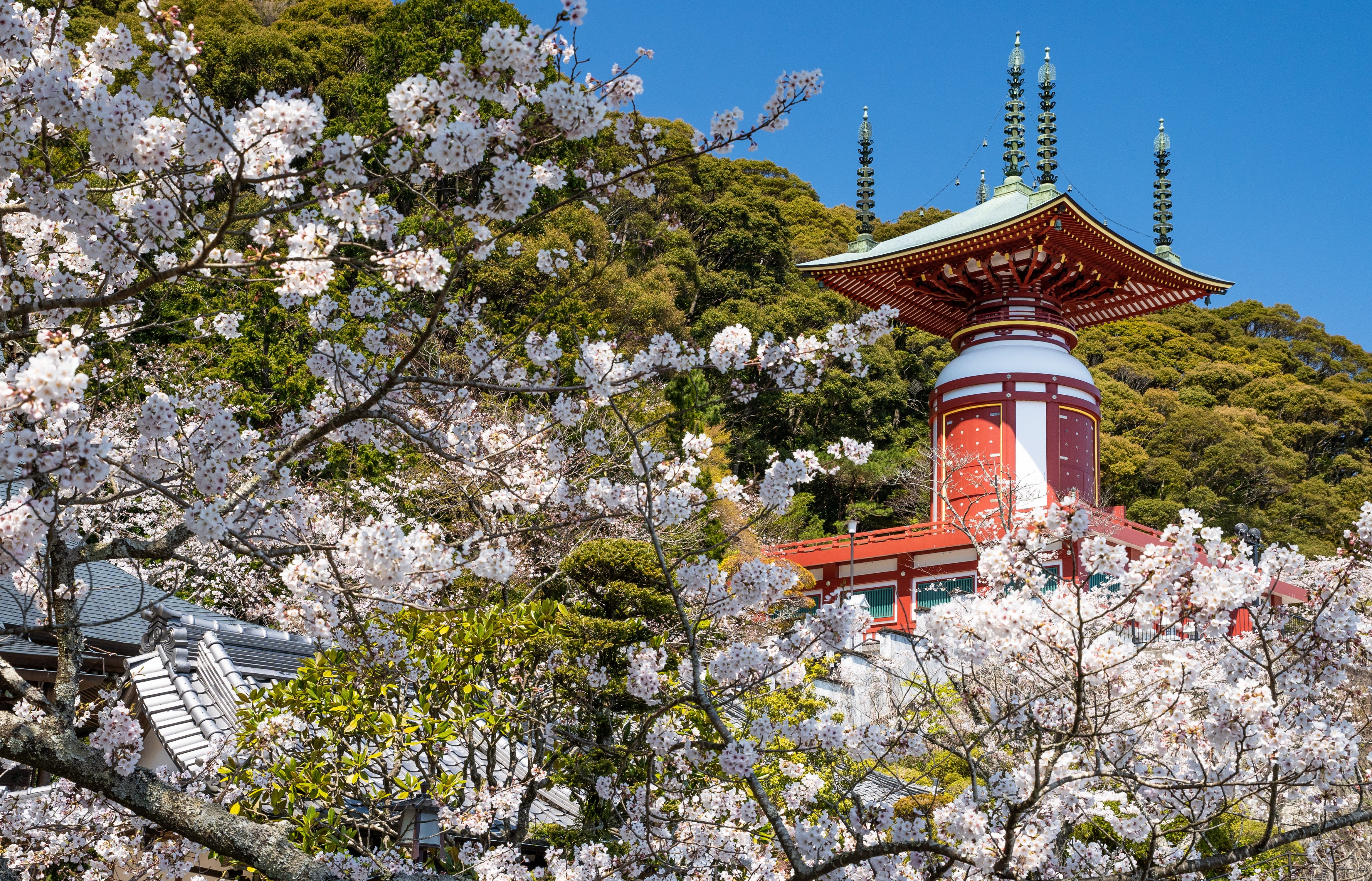 Shikoku's 23rd temple, a famous spiritual spot for warding off evil, features a coin-placing tradition on its steep steps. It offers panoramic views of Hiwasa and the sea.